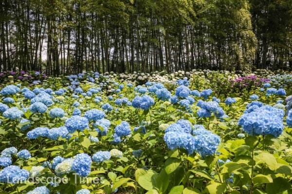 수국은 장마철(6~7월)에 만개하는 꽃으로, 비와 잘 어울리는 낭만적인 분위기로 많은 관광객을 끌어모읍니다.